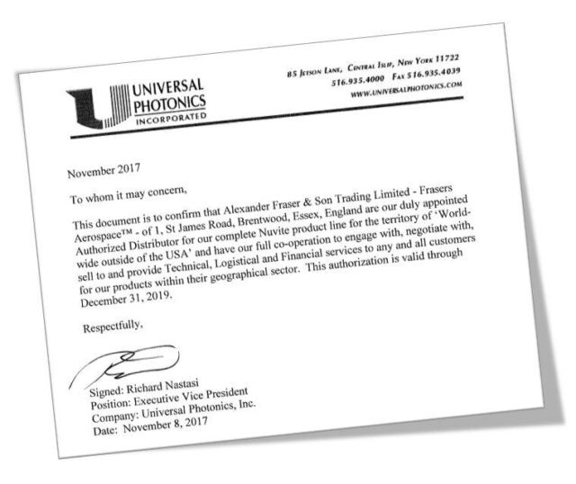 Frasers Aerospace continues its long-term relationship with the Nuvite Chemical Co. and Universal Photonics Inc.